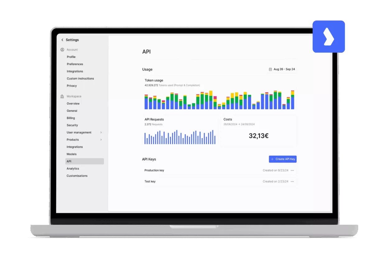 Langdock ist ein EU-gehostetes KI-Betriebssystem für Unternehmen: Chat, Assistenten, Integrationen und eine einheitliche API bündeln sich zu einer zentralen KI-Infrastruktur im Unternehmen. Neben KI-Wissensmanagement bietet Langdock Mandantenfähigkeit, granulare Rollen- und Rechtekonzepte, Versionsverwaltung, Audit-Logs sowie SSO/SCIM-Unterstützung. Damit wird KI im Mittelstand sicher, skalierbar und messbar nutzbar – auch für regulierte Branchen.